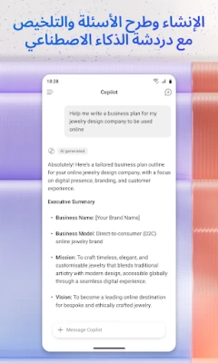 استمتع بتجربة تنظيمية سلسة على مدار اليوم. ابحث عن أي مستند، سواء كانت مجموعة شرائح لمشروع سابق أو صورة من مناسبة عائلية، أو حتى مرفق بريد إلكتروني، في غضون ثوانٍ. ومع دفاتر ملاحظات Copilot، يمكنك إدارة مشاريعك بكفاءة فائقة، حيث تجمع الأفكار والوثائق والروابط، ويتولى Copilot مهمة تلخيص النقاط الأساسية وربطها بذكاء. بالإضافة إلى ذلك، يمنحك التطبيق القدرة على مسح المستندات والصور ضوئيًا مباشرةً من هاتفك، ورفع ملفات Word أو Excel أو PDF للحصول على إجابات فورية، مع إمكانية حفظ أي محتوى ينشئه Copilot مباشرةً إلى جهازك، مما يجعله حلًا متكاملًا لعملك وحياتك الشخصية، ويجمع الوصول إلى Word وExcel وPowerPoint وملفات PDF في مكان واحد. لبدء الاستخدام، ما عليك سوى تسجيل الدخول بحساب Microsoft الخاص بك للعمل أو الدراسة أو حسابك الشخصي.